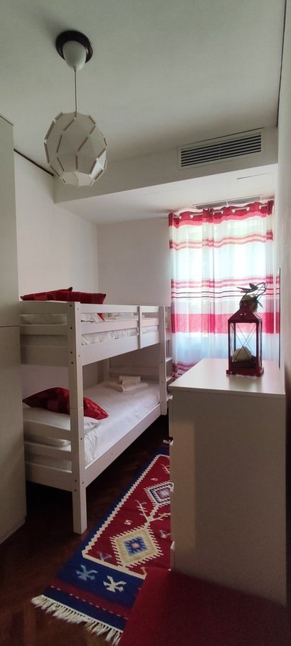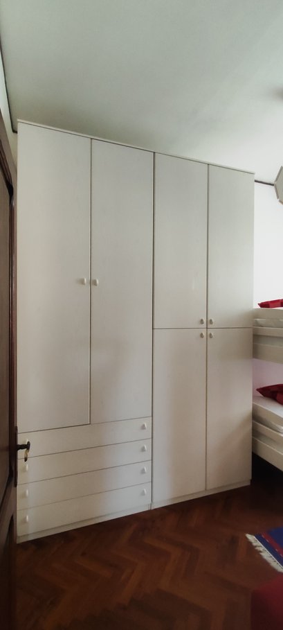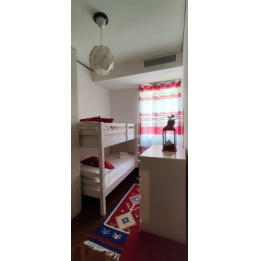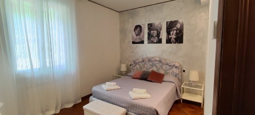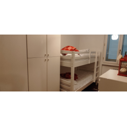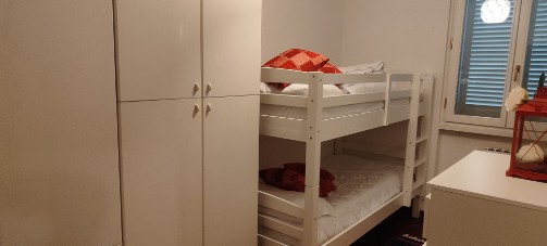 La casa ha 6 camere da letto disposte su 3 livelli:nel piano intermedio tra piano terra e primo piano, si trovano 2 camere da letto matrimoniali (entrambe dotate di raffrescatore di aria) e 1 camera con 1 letto a castello (con raffrescatore di aria); al 1° piano si trova 1 camera singola (con raffrescatore di aria) e terrazza privata; al 2° e ultimo piano (sottotetto) ci sono 1 stanza di passaggio con 1 letto singolo dalla quale si accede alla mansarda, fornita di 2 letti singoli;queste ultime due stanze (sottotetto) non dispongono di raffrescatore di aria.